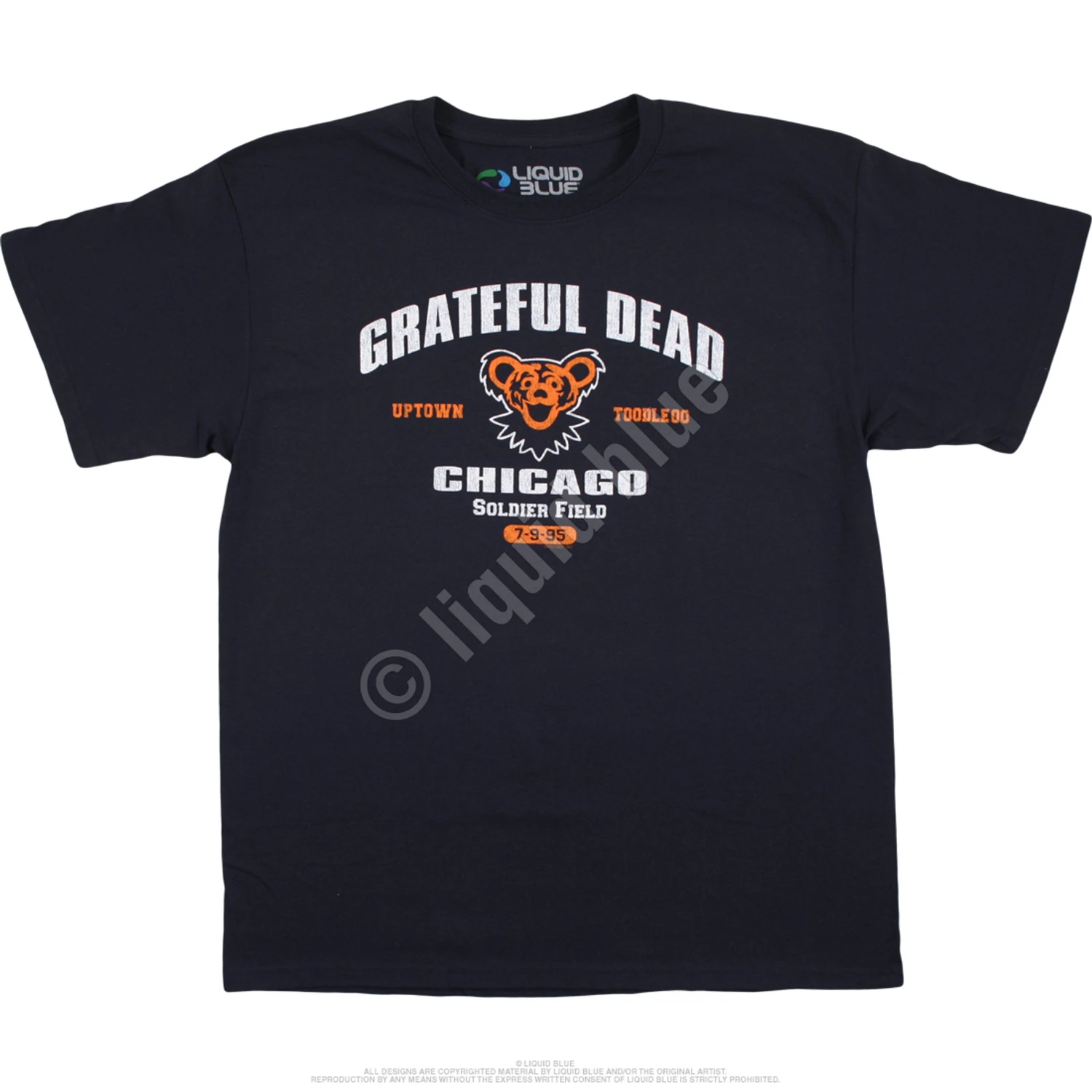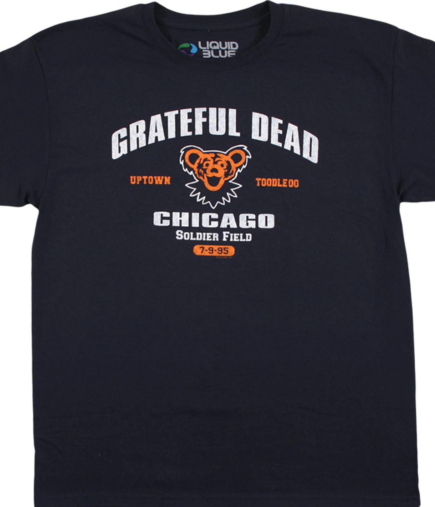 This Grateful Dead T-shirt is one in a commemorative series called the Tour Issue Collection. The Chicago T-shirt is definitely a classic but somewhat bittersweet since it marks the late Jerry Garcia’s last show with the band. Soldier Field was the venue for this finale of the 1995 Summer Tour. The show got off to a lively start kicking off with Touch of Grey, and featured many Grateful Dead staples such as Shakedown Street and Promised Land. Late in the second set the crowd was wowed by Phil Lesh’s stunning version of Unbroken Chain and it was another Lesh composition, Box of Rain, that closed the night, the tour, and the Jerry Garcia era. The last lyric in the song was frighteningly poignant: “Such a long, long time to be gone and a short time to be there”. July 9th 1995 is a night that no Deadhead could ever forget.