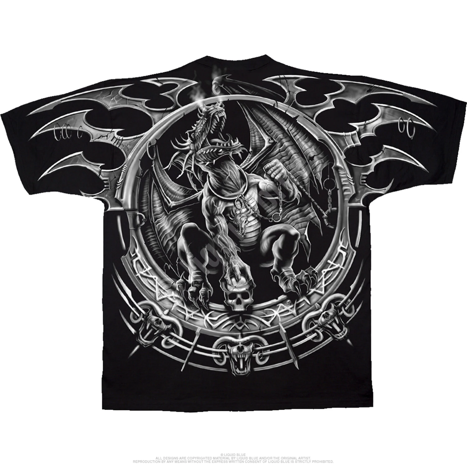 This Fantasy T-shirt features one of best designs the dragon catcher. Our Fantasy line is known to be dark, provocative, and often breathtaking. It typically highlights skulls, dragons, fire, and death. Of course this shirt is 100% heavyweight cotton, pre-washed and pre-shrunk.