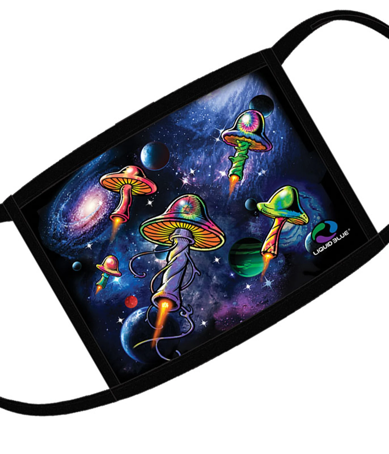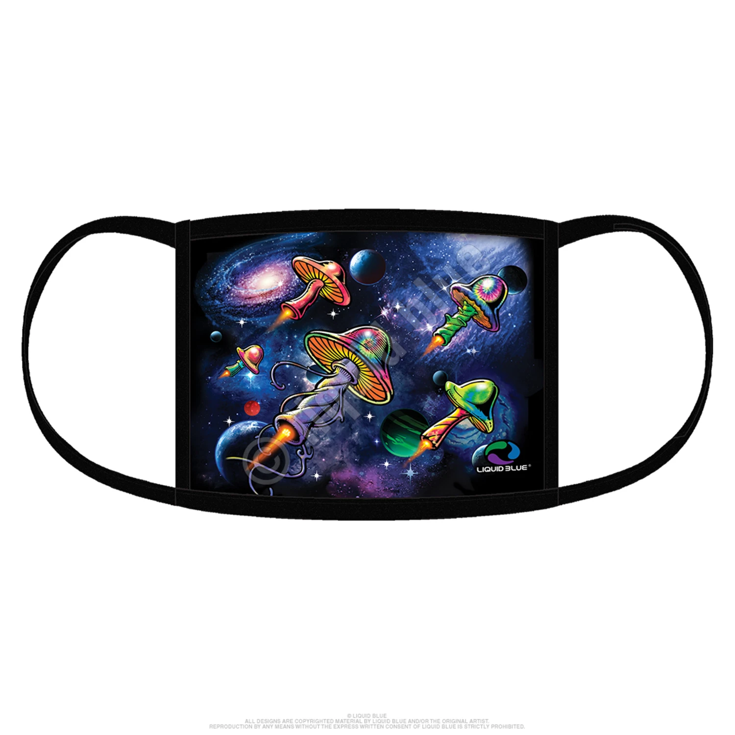 Official Liquid Blue Printed Artwork. 88% Polyester/12% Spandex • 100% Cotton Liner • Self Fabric Ear Straps • One Size Fits Most • Lightweight • Super Soft For Breathability • Digitally Printed • Machine Washable
