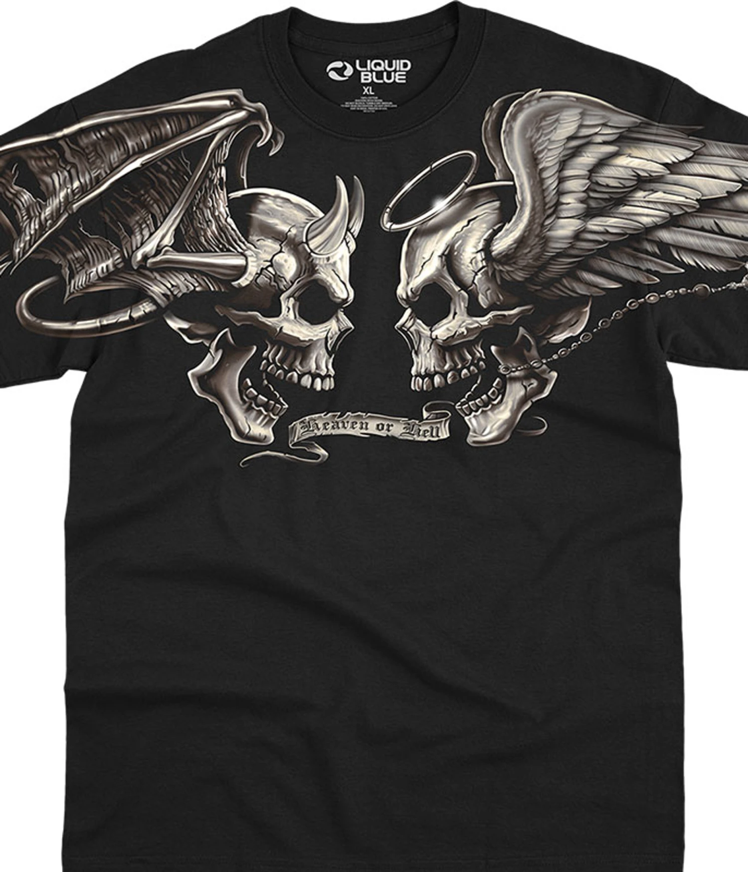 The choice is up to you. The battle between good and evil is fought in the hearts and minds of all of us. This Skull T-shirt is synonymous with our Fantasy line, which is known to be dark, provocative, and often breathtaking.