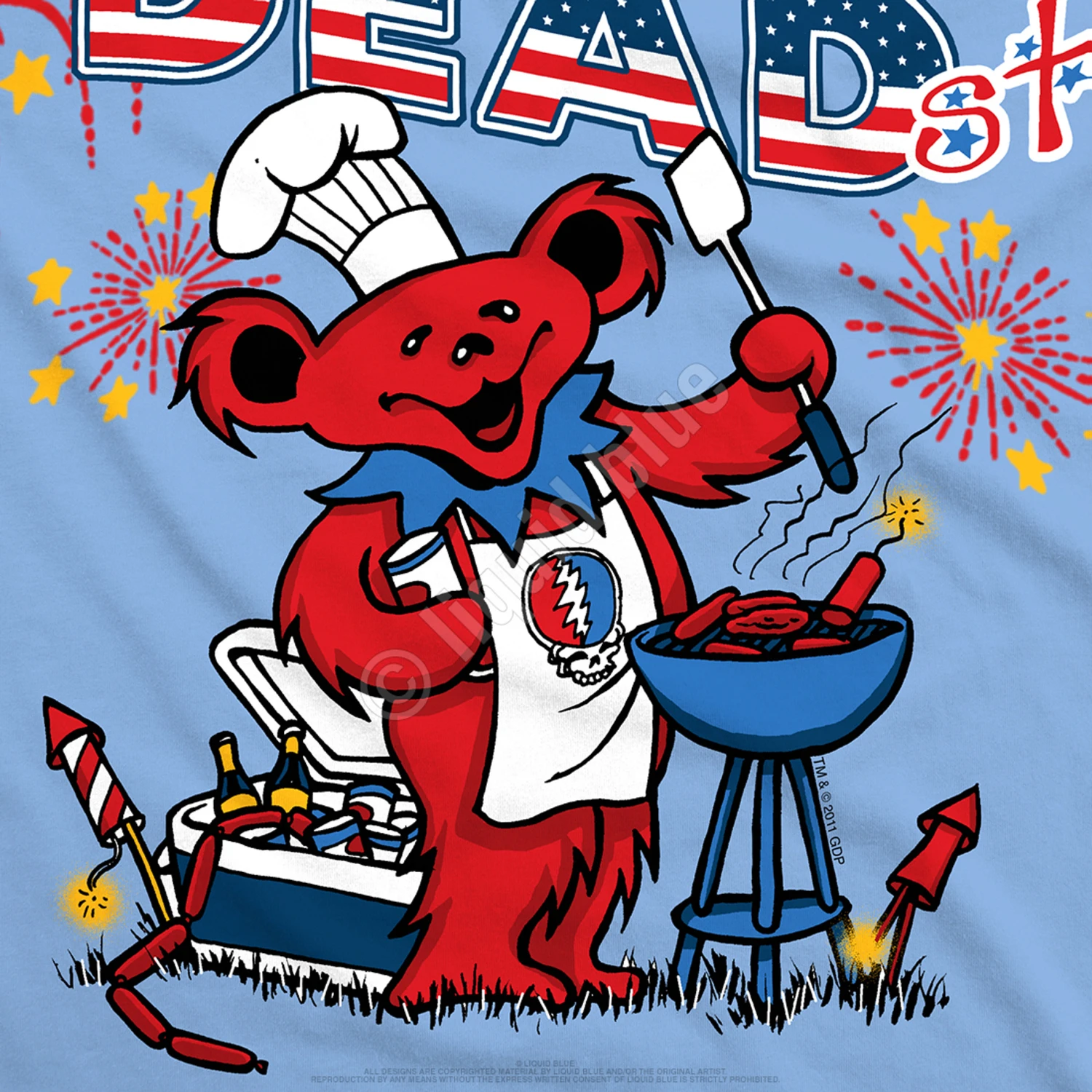 Officially Licensed Grateful Dead Graphic T-Shirt, Tee designed and printed in the USA by Liquid Blue. Available in a wide array of sizes, from Small to 6XL.