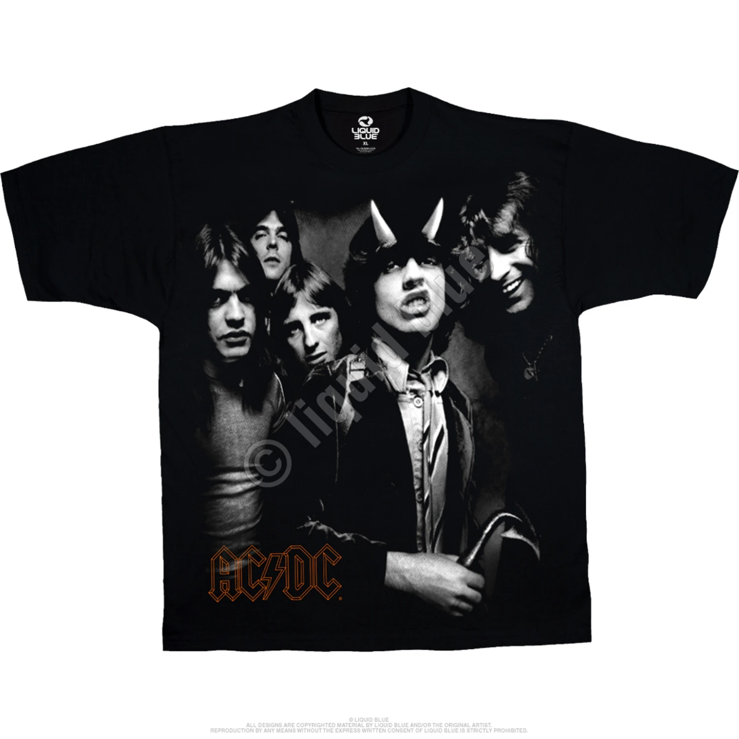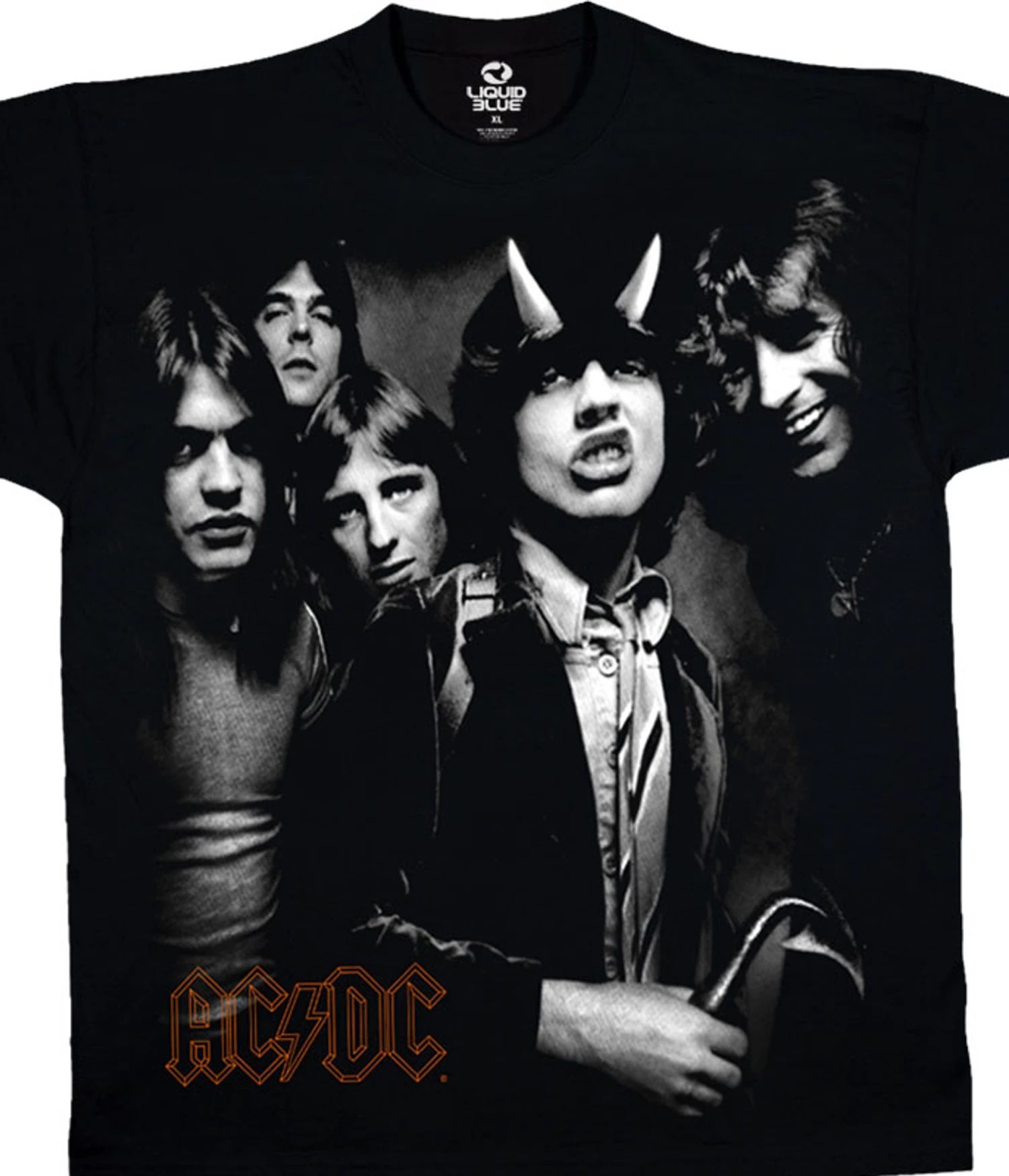 Officially Licensed AC/DC Graphic T-Shirt, Tee, Tie-Dye designed, dyed and printed in the USA by Liquid Blue. This AC/DC t-shirt features the album art from the 1979 release Highway to Hell. Sadly, lead singer Bon Scott passed away only months after the record hit the streets, a record that many regard as Scott’s finest moments on vinyl. In a very telling way, Highway to Hell is a celebration of sex, booze, and Rock n’ Roll, and an homage to the “live hard-die hard” philosophy.