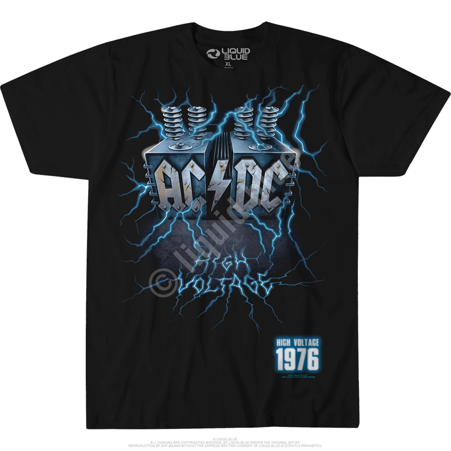 Officially Licensed AC/DC Graphic T-Shirt, Tee, Tie-Dye designed, dyed and printed in the USA by Liquid Blue.