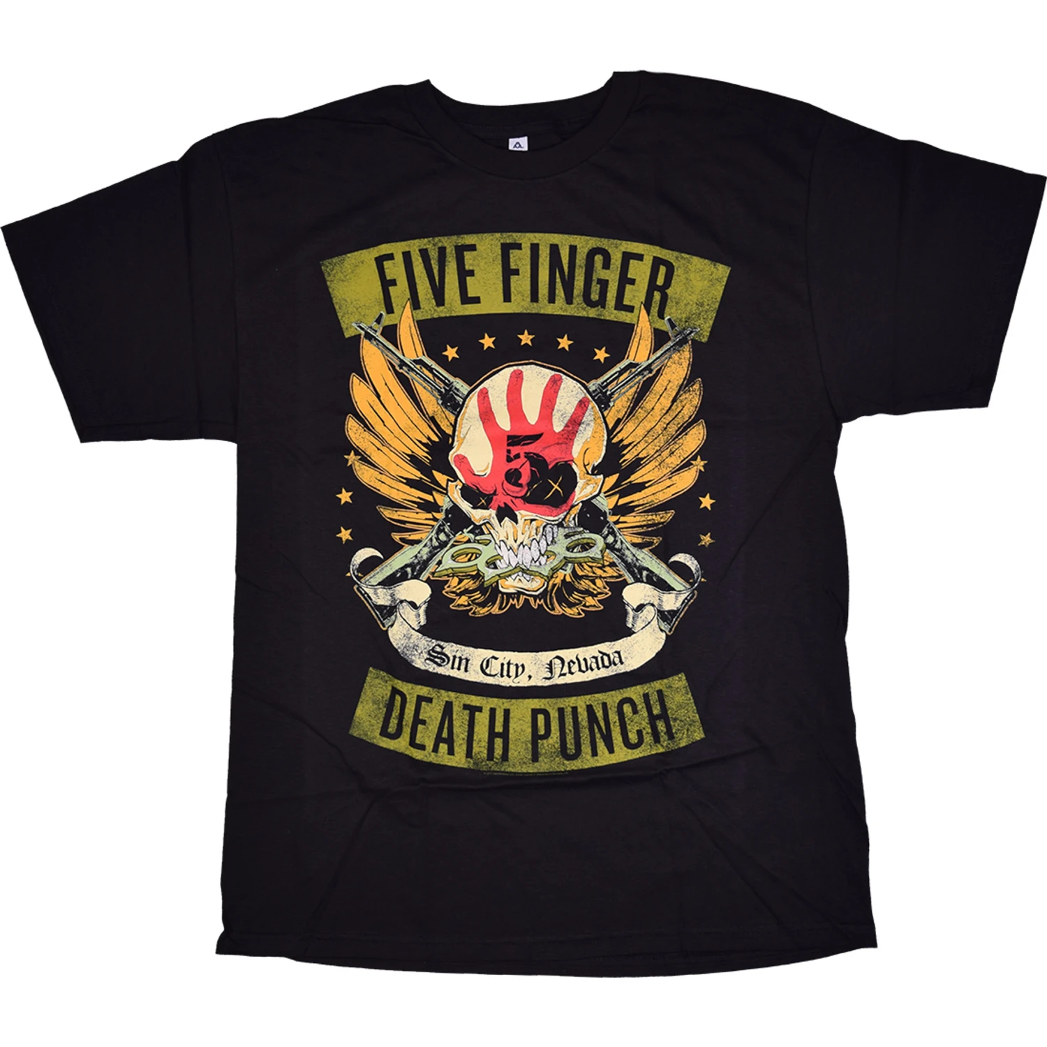 Liquid Blue Five Finger Death Punch Locked and Loaded Black T-Shirt Tee.
