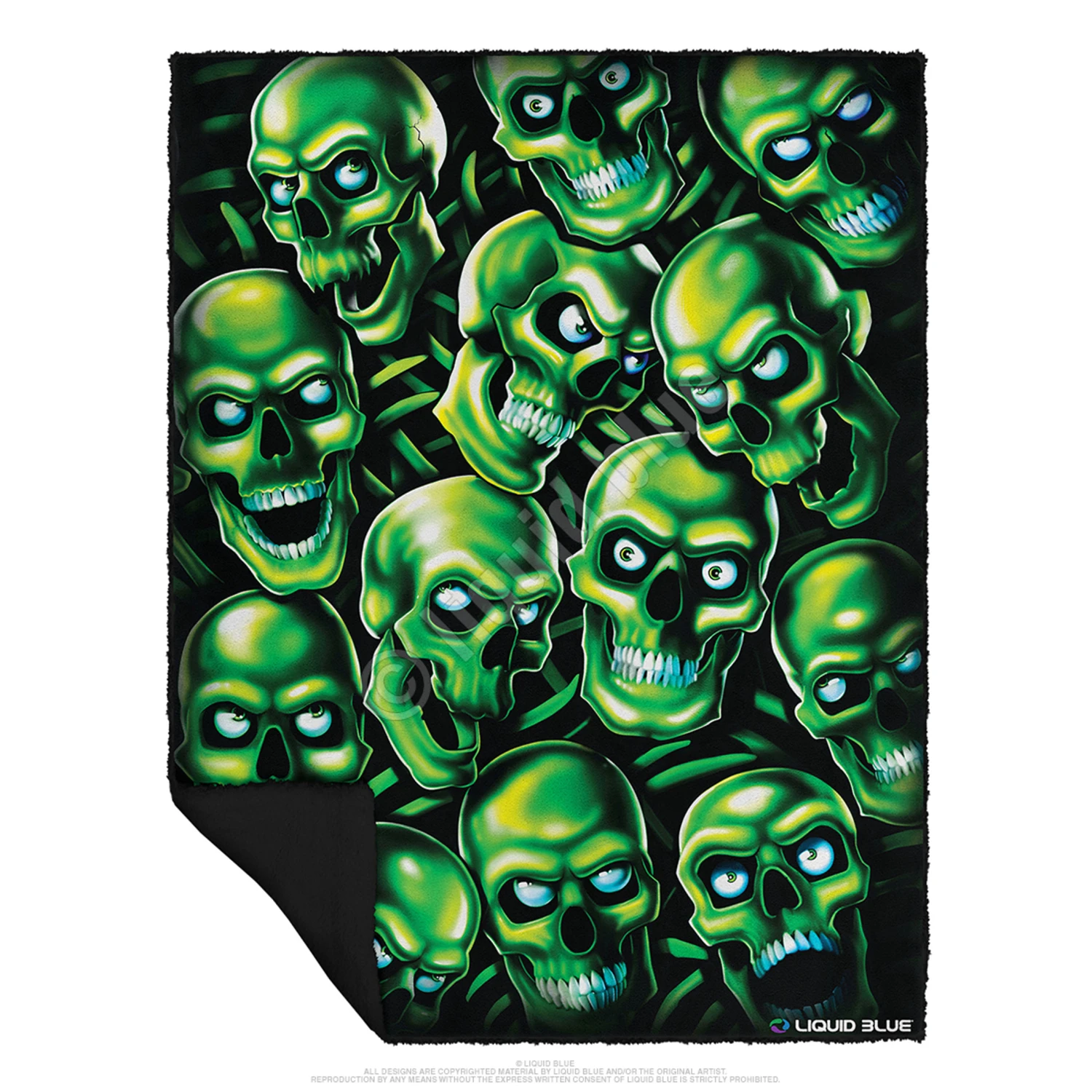Liquid Blue presents the awesome of Skull Pile design on a huge fleece throw blanket. This 50 in. x 60 in. fleece blanket is made of 100% polyester coral fleece and backed by a soft heavyweight Sherpa material. It is digitally printed and is machine washable. Officially Licensed Rock and Roll Merchandise | Gifts & Accessories