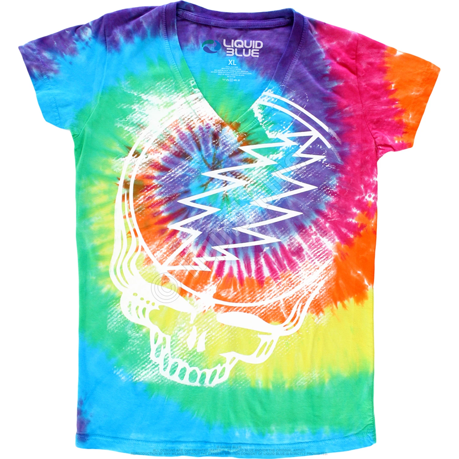 Stealie Tie-Dye Juniors Long Length V-Neck T-Shirt